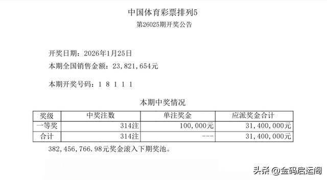 六合彩,六合彩开奖结果,六合彩预测,六合彩走势图,六合彩投注,六合彩技巧,六合彩结果今期,六合彩玩法排列五第26025期开奖。本期号码为:1、8、1、1、1。全国共开出 314注,单注奖金十万元,总计派发奖金 3140万元。开奖后,奖池资金为 3.825亿元。