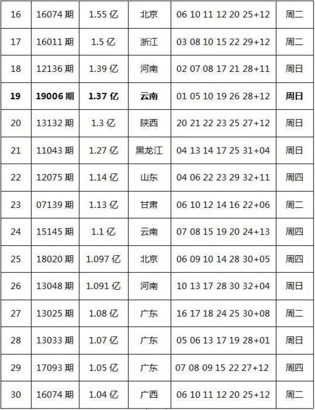 周日诞生的亿元大奖共有8次,本次云南1.37亿巨奖就是在周日中出,而咱们湖北省在13年诞生的亿元大奖也是于周日诞生,也许对于咱们湖北彩民来说,周日运气更好点。